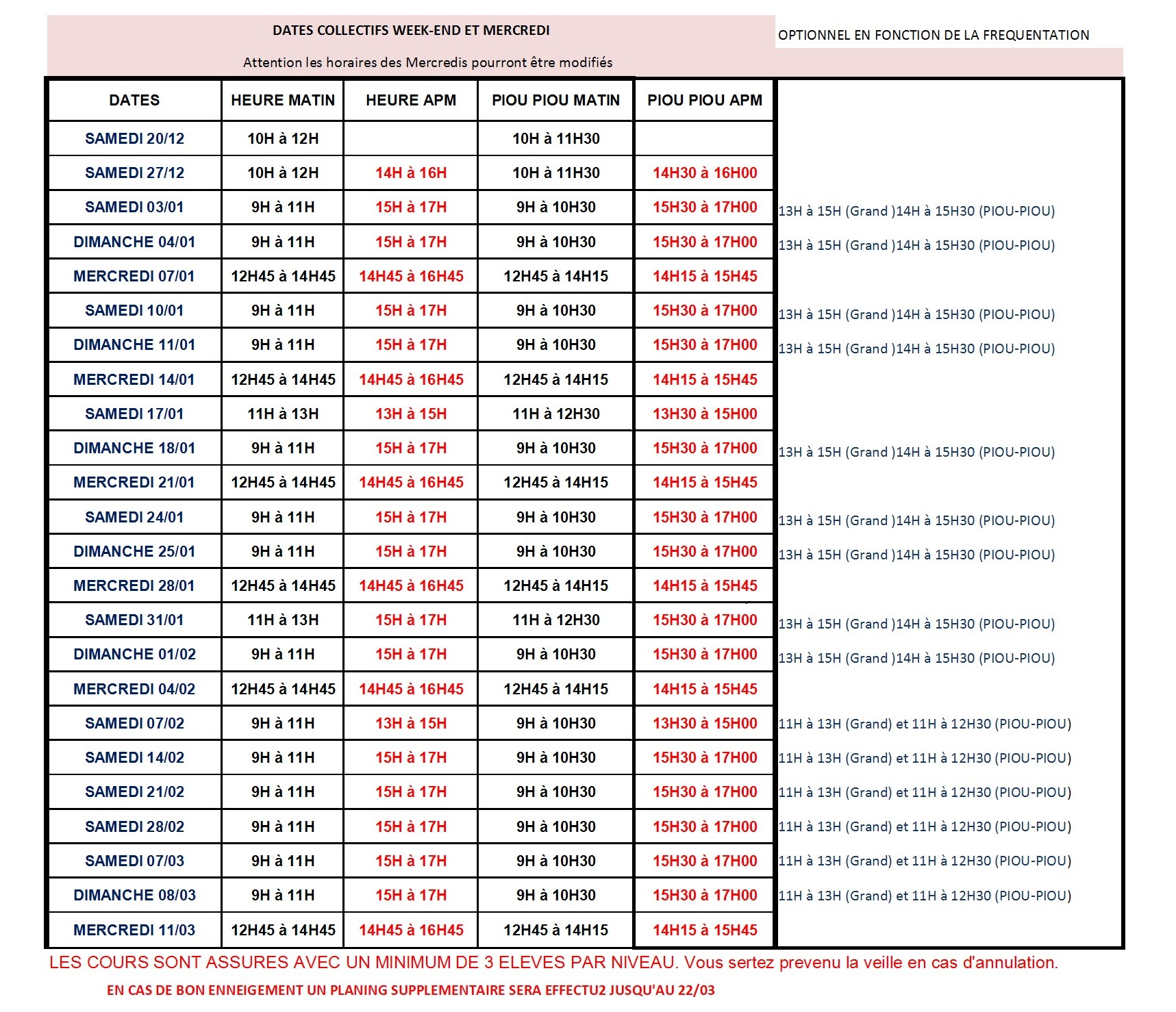 weekends durant toute la saison. Les dates et horaires de cours seront disponibles sur le site
